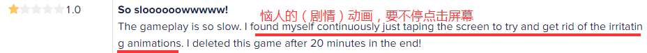 还有用户苦恼于太多的(剧情)动画,要一直点击屏幕,觉得整个游戏进程实在太太太慢了。