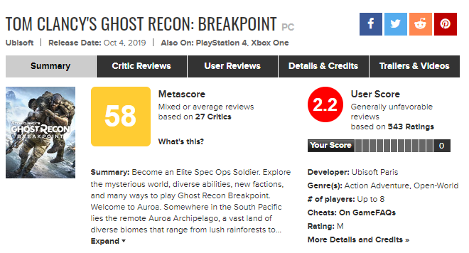 2、育碧:收入不好都怪《幽灵行动:断点》!