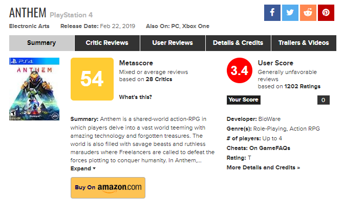 可惜《圣歌》发售后,不但在质量上令人失望,还暴露了BioWare混乱的项目管理。一个充满潜力的服务型游戏,由于内容的匮乏和设计问题导致后续更新无以为继,产品陷入了非常尴尬的境地。