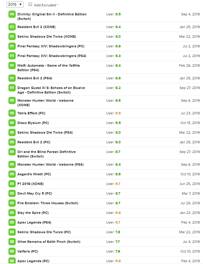 当我们打开Metacritic、OpenCritic这样的媒体评分综合网站想要回顾一下今年有哪些质量过硬的游戏时,你会发现,今年排在前面的游戏大多都是日本厂商的产出。除了黑马作品《极乐迪斯科》和一度大火的吃鸡游戏《APEX英雄》,几乎没有太多的欧美新作能够位列前排。那些坐拥IP的各色欧美大厂们,难道2019年都是在摸鱼中度过的吗?