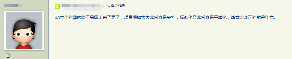 2017年,《刺客信条3》的创意总监Alex Hutchinson因为厌倦了打造大卖的游戏系列而离开了育碧,而他对3A游戏的言论一度引发过不少争论。他认为欧美3A游戏单纯在规模和图像上的增强就像“恶性增长的癌细胞”,未来业界不是沉迷于不断地从玩家处榨取更多的现金,就是终结于将图像解析度或者游戏规模推向极致。可以说,2019年欧美厂商的种种表现,似乎又在某种程度上佐证了Alex Hutchinson的观点。