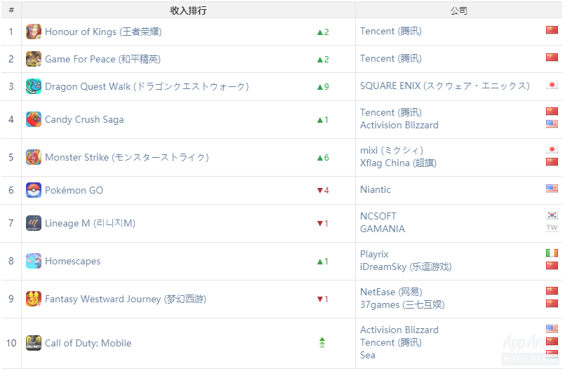 全球iOS & Google Play游戏收入总榜:腾讯霸占前2名,新AR手游紧随其后