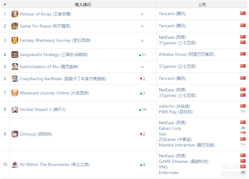 中国iOS游戏收入榜:《崩坏3》首次入榜,《三国志·战略版》冲进TOP5