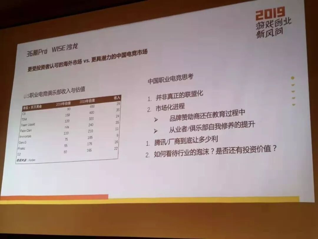 对于整个产业来讲,2019年,我们认为非常重要的变化就是腾竞体育,它在中国单独运营LPL赛区的商业化开发,把电竞从腾讯的体系中剥离出来,这是行业中非常重要的一步。因为至少表面上讲,如果腾竞体育将来引进外部投资者、新投资人的时候,它会变得更加的独立,更加的第三方。不是总站在游戏开发商、研发商和游戏运营商的角度做考虑,而是更多的为俱乐部、为整个联赛、为整个电竞生态做让步,这样电竞生态体系才能做得更好。