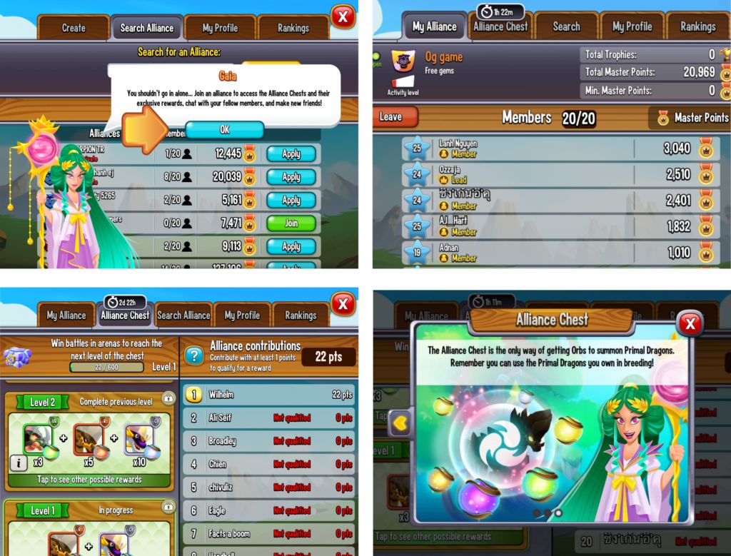 在《Dragon City Mobile》中,则增加了联盟宝箱,公会成员完成不同任务可以提升宝箱的等级,获得更好的奖励。比如宝箱是获得特殊原始龙的唯一途径,由此刺激用户积极参与联盟任务。