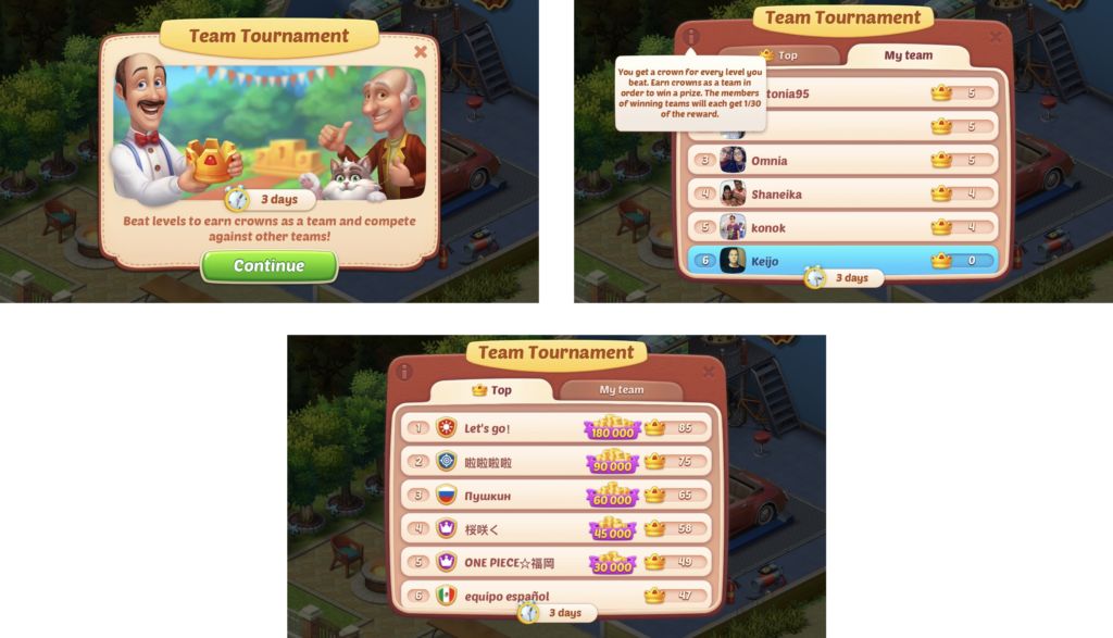 尽管目前休闲游戏中含有公会机制还不是一个普遍现象,但是这个趋势愈发明显,尤其是头部的三消游戏,比如Playrix的《梦幻家园》、《梦幻花园》以及《梦幻水族馆》。
