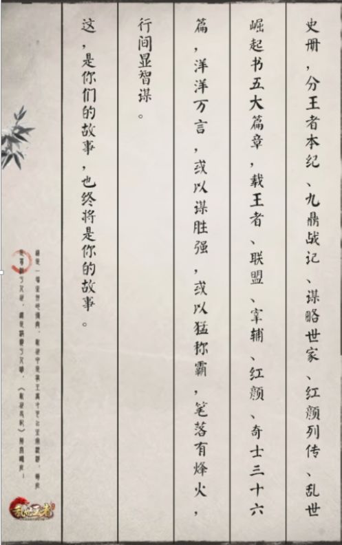 游戏更迭,历史演变,玩家故事文创同样不落分毫。在今年,顺利升级成为《荣耀史册》。乱世为崛起而战,荣耀为登顶而行,故事在自我完成一种演变。“列传篇”、“世家篇”、“本纪篇”三个极具史诗韵味的篇章成为抒写玩家故事的新方式。