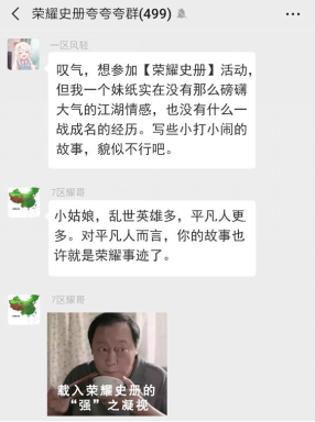 在玩家社区有玩家将群名自主改外“荣耀史册夸夸夸群”。