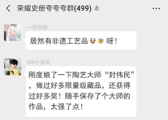 当然除却“全服出名”这一点,对玩家而言极具吸引力的莫过于“非遗”定制奖励了。就如同上图中某位玩家那样,从不了解非遗到到基础认知,并且很快被中国千年智慧精华的非遗作品征服,这也许就是接下来《乱世王者》通过《荣耀史册》联动非遗最想达到的效果吧。