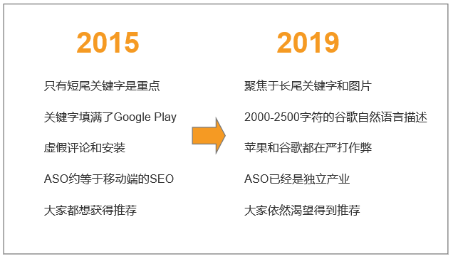 在当今世界,四年间发生的变化几乎就像一生那么多,特别是在日新月异的技术领域。ASO(App Store Optimization)也不例外,自从2015年以来,我们的团队目睹了许多变化,下面我们来介绍重点。
