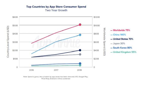 在亚洲国家或地区,App Store中的消费者支出金额显著增长。你不能再坚持针对单个国家或者地区针对优化了,相反,你需要针对全球市场进行优化,并花一些时间来对截图中的文字和元数据进行翻译。然后,你可以分析哪些市场对此有良好的反应,再针对其本地市场优化图片素材、色彩和品牌。该策略可以与广告投放结合,以增加安装量和收入。