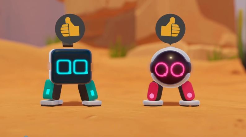 确实,拿掉了双手的机器人更呆萌更笨拙了,但他们俩很快发现,即使是用脚小家伙们也可以做到抓、扔、丢等操作,“因为脚其实可以代替手做任何事情”。这样的简化甚至直接给游戏带来了名字:Biped,亦即双足生物。而在此之上,他们似乎还为游戏找到了更强的乐趣——双人合作。