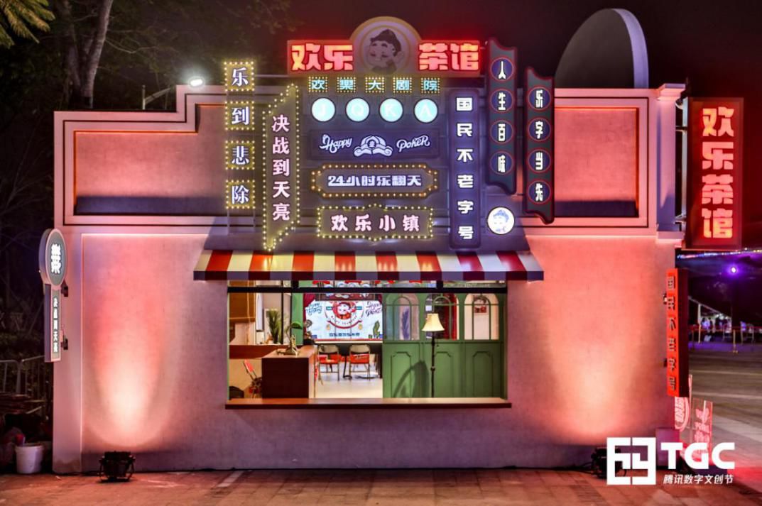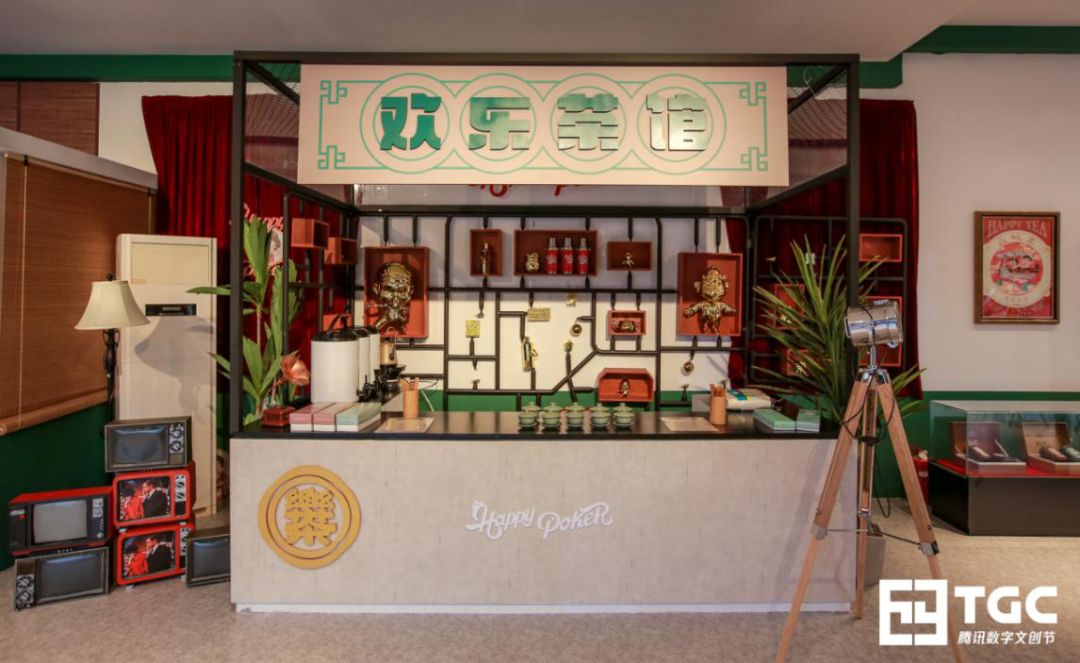 坐落其中的一间名为“欢乐茶馆”的空间内人流如织。跟随人群一探究竟的笔者也被眼前的新潮画面及欢乐氛围所吸引——特制的大碗茶饮料、舞台上精彩的相声、围坐在一起打扑克的玩家。了解到这是腾讯《欢乐斗地主》和《欢乐麻将》的展台区,更萌生了几分兴趣:这些从小玩到大的棋牌游戏,为什么会突然变得这么“潮”?
