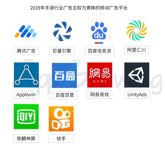 报告基于各平台的游戏投放数及游戏广告数,总结了手游行业广告主较为青睐的10大流量平台,具体如下: