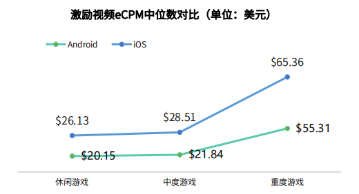 激励视频:重度游戏渗透率仅9.13%,iOS端eCPM达65.36美元
