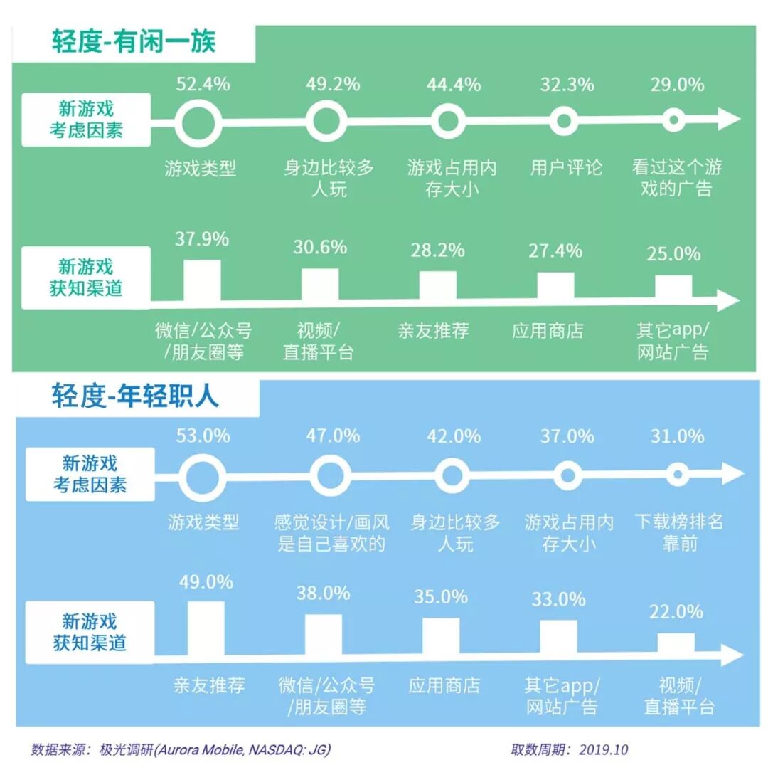 轻度-年轻职人也会更青睐设计/画风合心意的新游戏(47.0%),他们获取游戏的渠道多是亲友推荐(49.0%)。
