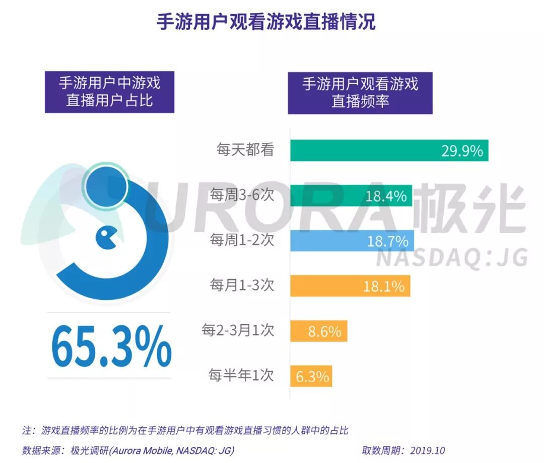 游戏直播行业是游戏行业的延伸。手游用户中,有65.3%的人看游戏直播。其中,每天看游戏直播的多达29.9%,近7成每周至少看一次。