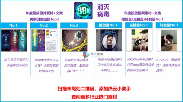 新增买量Top3手游:《消灭病毒》三月份投放素材近4万份