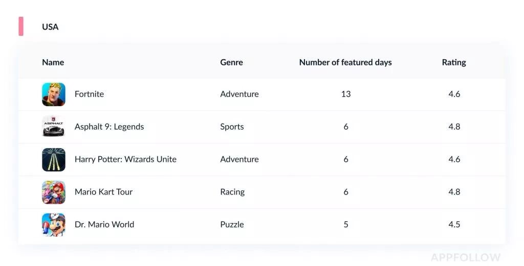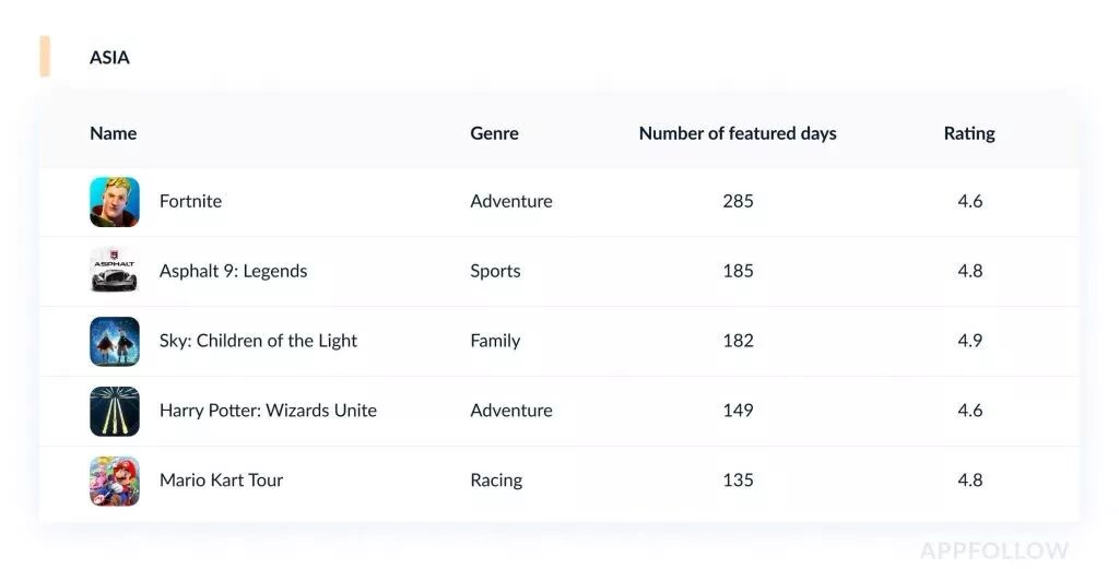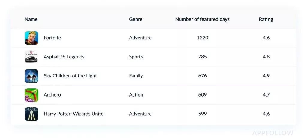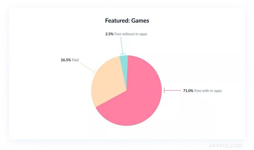 根据数据机构AppFollow的统计,在2019年总共有3100款App登上过App Store的首页推荐,其中有1465款(接近50%)都是游戏。
