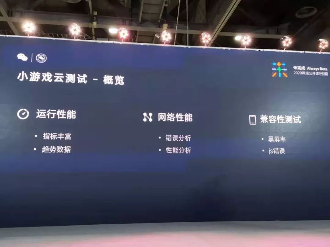值得一提的是,2020年,平台还将支持PC版微信小游戏,多人对战,提供场景长期订阅、云测试、功能插件、实践等功能。云测试主要考虑到小团队测试现状,并为其进行运行性能、网络性能以及兼容性测试。