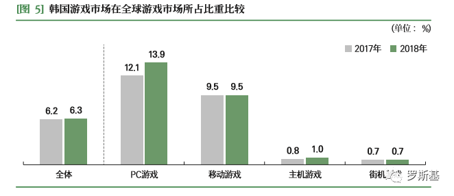 韩国占全球游戏市场的6.3%,在移动游戏市场位列世界第四