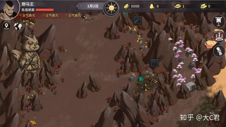 但同时我们也发现几个有意思的点,当我们在游戏的地上增加一些可以捡的资源以后,整个游戏节奏变得有意思起来。我们内部称为“捡垃圾”的玩法,让地图上遍布资源,你在行军途中会有一些条件反射式的方式来填充并调剂节奏。