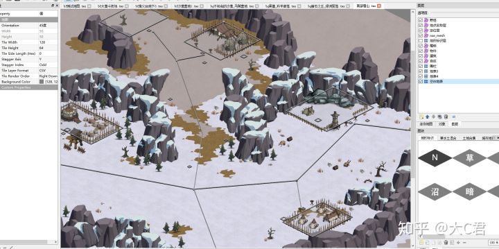 于是我们彻底放弃tilemap,自己编写了一套更强大的地图编辑器,集成了游戏内的地点、导航网络、地形刷、npc设置、触发器等等功能。