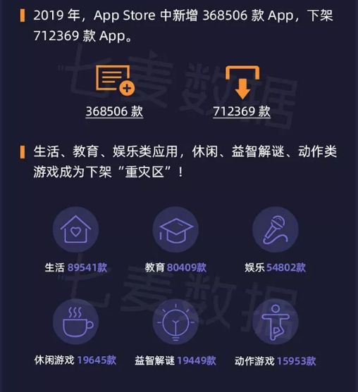 1月17日,七麦数据发布了《2019年度苹果应用商店数据报告》,从2019年App Store(中国区)应用的总量、过审时长、霸榜天数、推荐数、搜索热度等维度进行了分析解读。
