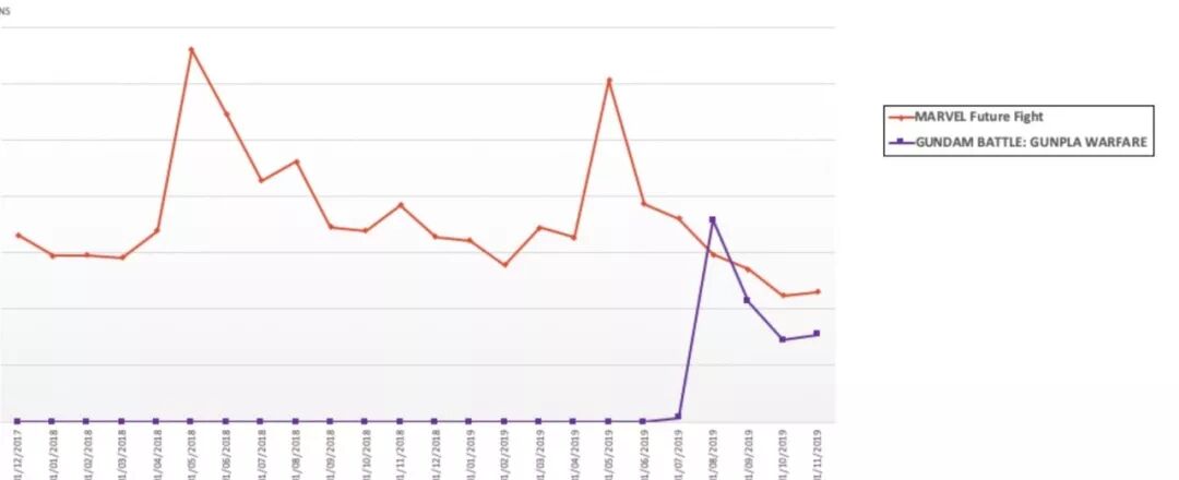 ARPG表现稳定,它跟MMORPG的区别就是它拥有像漫威这样的大IP产品,这也反映在两者的下载量变化上。