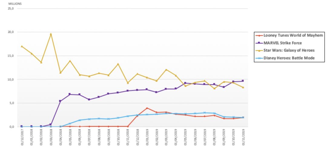 在回合制RPG方面,西方市场整体依然落后,《突袭:暗影传说》和《英雄战争》两款游戏齐头并进,漫威和星球大战两款游戏则互吃用户,《魔灵召唤》成了2019年的“输家”,虽然它依然是收入颇高的回合制RPG,但大批新游的涌进以及自己老化都已经让它颓势尽显。