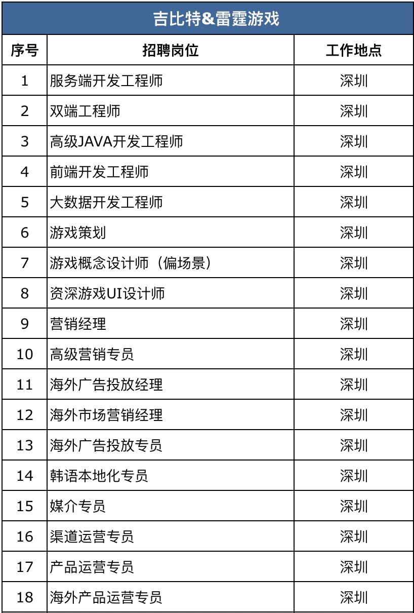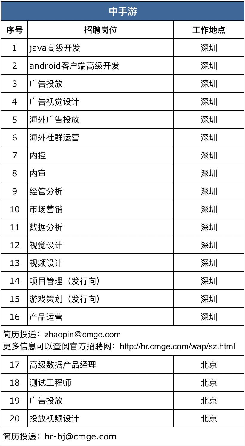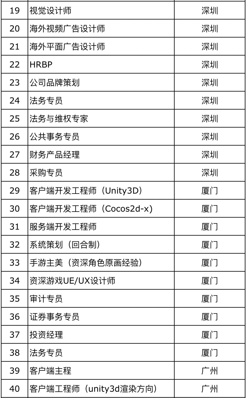 社招更多的是基于自身公司的业务需求和对招聘机会的把握。比如游族网络第一季度有超200个招聘需求、英雄互娱有上百个岗位需求虚位以待、吉比特&雷霆游戏有50余个岗位需求,还有创梦天地、中手游、四三九九、仙峰游戏、三七互娱、小白工作室、域起网络、草花互动、IGG、掌趣科技&天马时空等都有较充沛的岗位需求,整体上招聘需求是延续去年的计划安排。