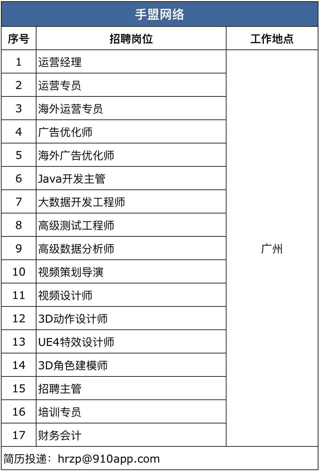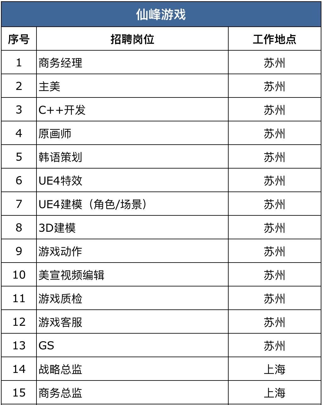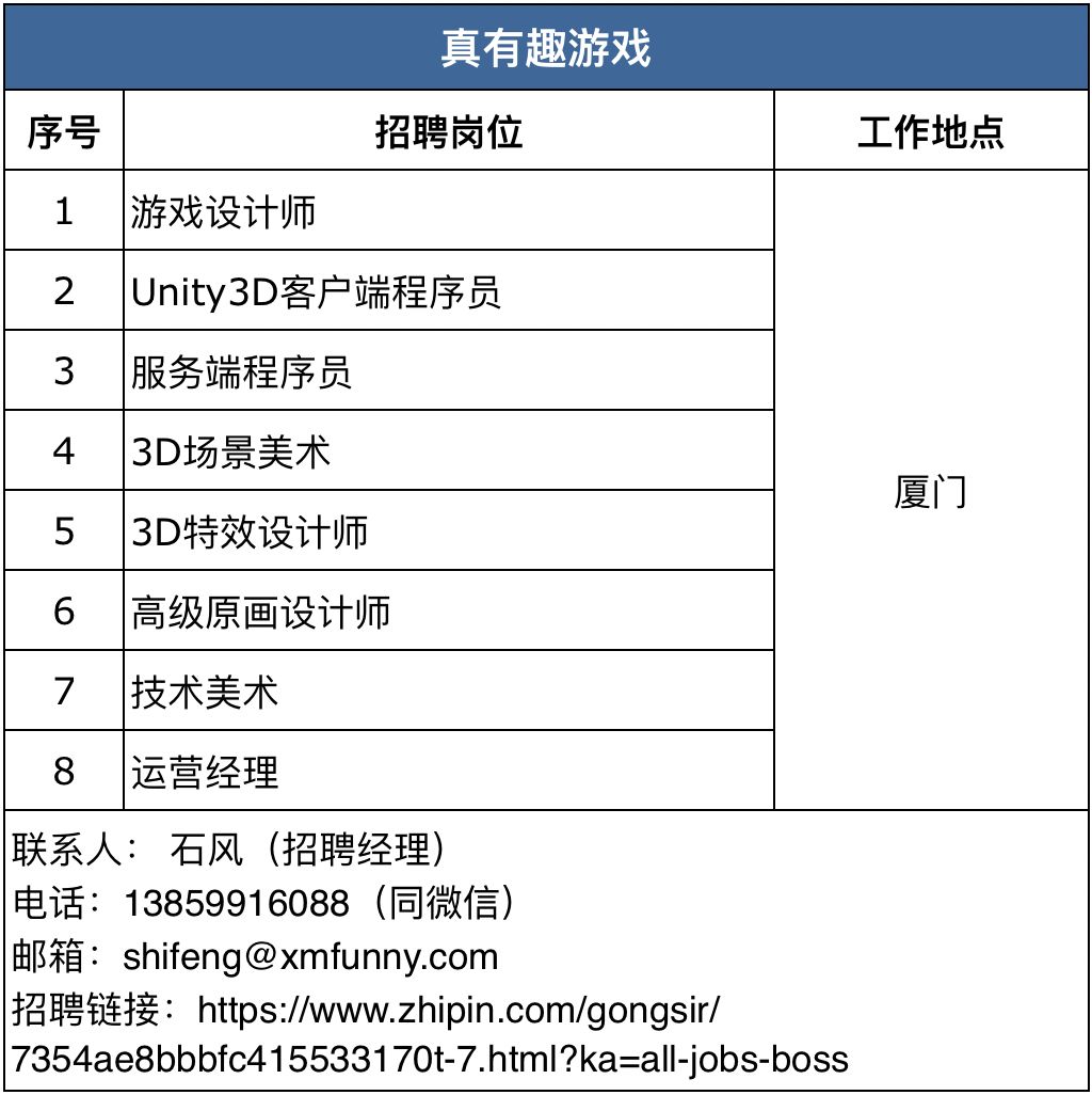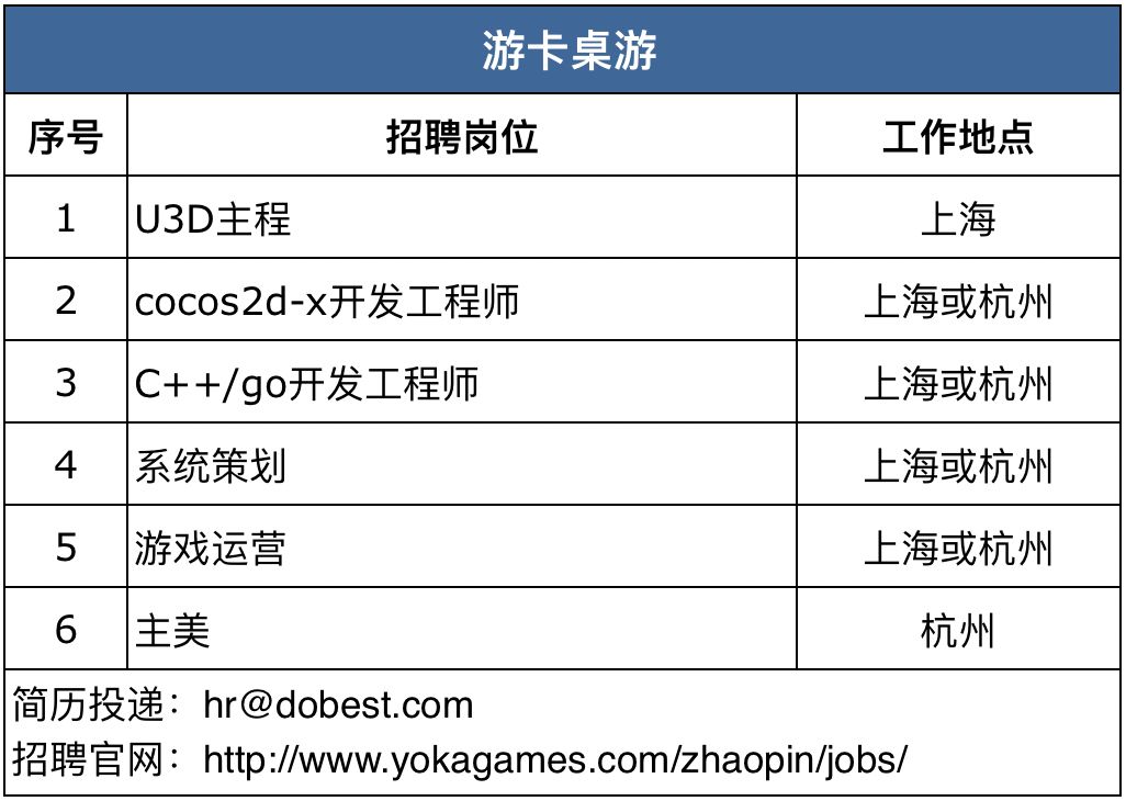 随着大众逐渐回归工作,许多公司的招聘工作逐步展开。近期,游戏陀螺进行收集和调查,截止到2月17日下午15:00共收到42家游戏公司超850个岗位需求(含2月15日微信文章发出去后收集到7家厂商需求),其中工作地在北京、上海、广州、深圳的公司分别有7家、8家、15家和9家,还有武汉5家、杭州3家,以及厦门和成都各2家,福州、长沙、苏州、天津和珠海各1家。(有公司提供多个工作地,有重复计算)