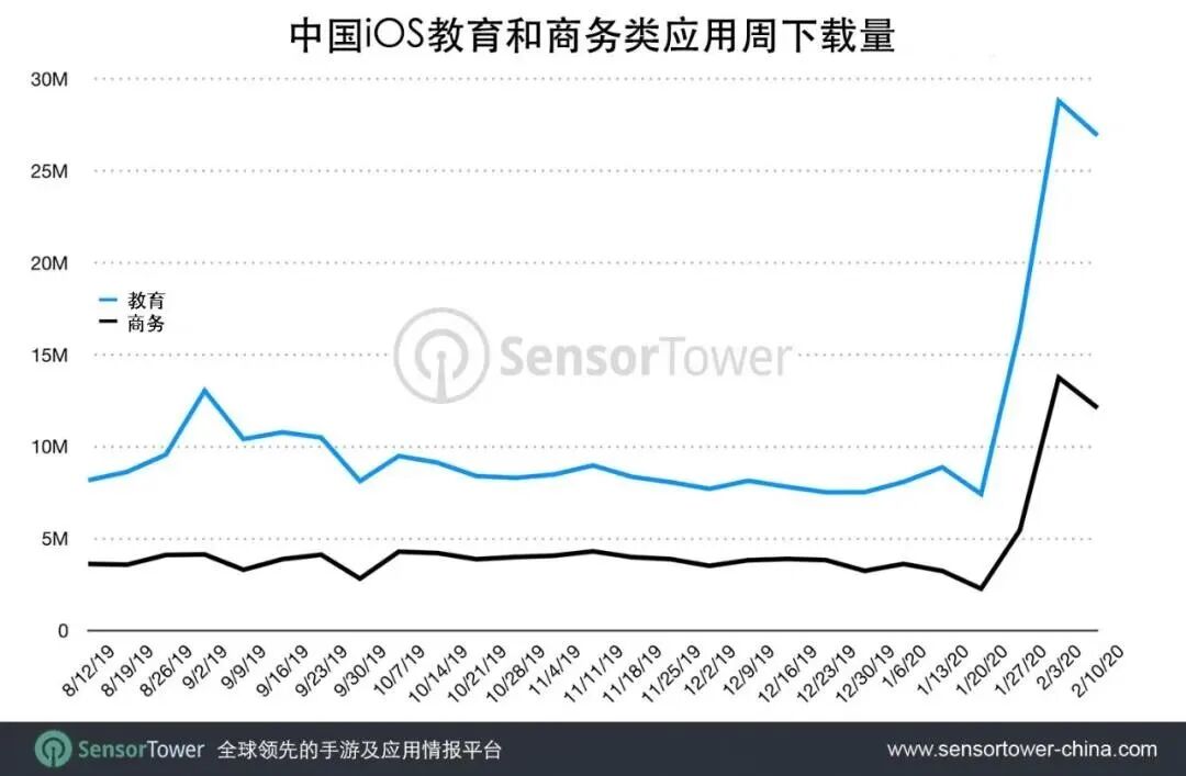 至于钉钉在中国的下载量,根据Sensor Tower数据,钉钉在2020年1月1日-1月18日期间,iOS仅获得67万次下载;而1月19至2月中下旬,该应用的下载量超过1100万次,实现了爆发式增长。
