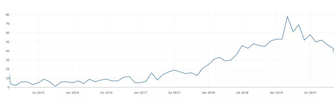 能进入超休闲下载排行榜前100的新游在2018年增长迅速。然而到了2019年中期,这一增长似乎已经见顶,当时在超休闲下载排行榜前100有80个新发布的超休闲游戏,在那之后这一数字就开始逐步下降。这一数据意味着新超休闲游戏开发者会承担更大风险,在上线和推广前需要更多开发和测试。