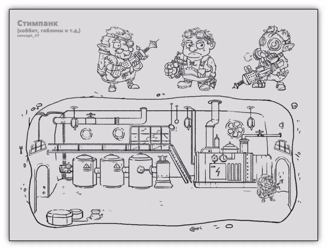 他们的出发点是要做大众化的产品,因此要选择能够吸引大多数手游玩家的画风。Pavel提到他们当时有许多方向,比如老式的斯拉夫风格、令人毛骨悚然的深色基调盔甲幻想、带有滑稽的霍比特人和妖精的蒸汽朋克风、战猫、捉鬼敢死队,或者是诸如地下基地和来自《卑鄙的我》中的小黄人。