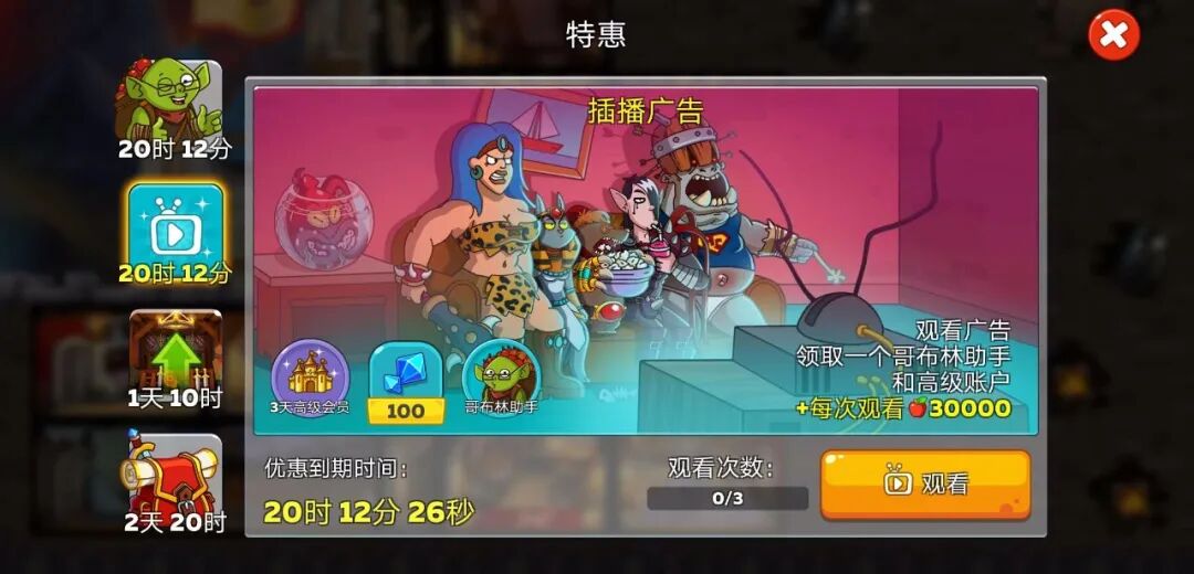 现在再看《喧闹的城堡》,会发现付费系统非常完善,比如VIP系统、居民星级可通过钻石购买提升,以及丰富广告变现模式。