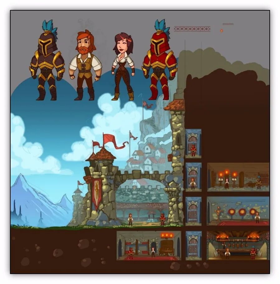 简单来说,《喧闹的城堡》是一款城堡建设下的RPG换装战斗游戏,采用类似《这是我的战争》、《辐射:避难所》的上帝视角,玩家建造升级房间,发展居民,并到世界区参与战斗,获得更多资源和更好装备。