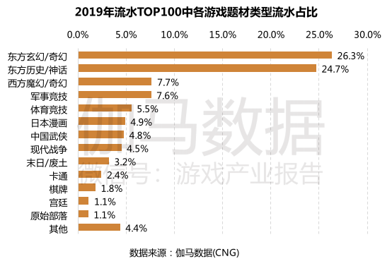东方文化题材流水占比仍较高,末日/废土类流水增速同比高达303.9%