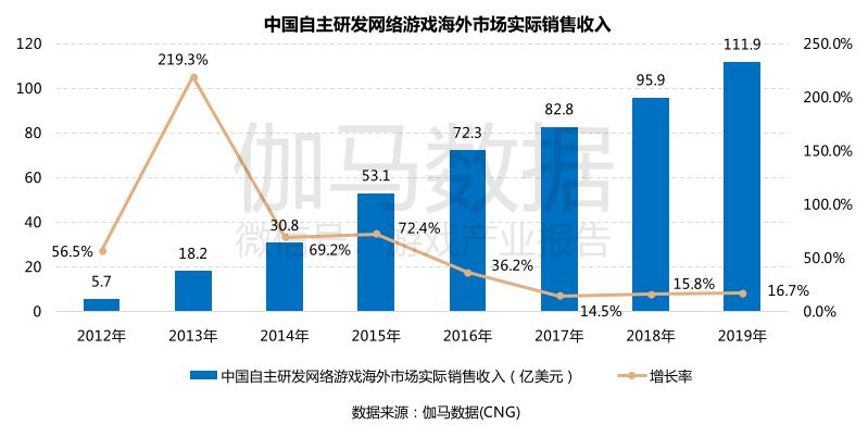 2019年中国自研游戏海外收入111.9亿元,在美流水同比增长率高达59.3%
