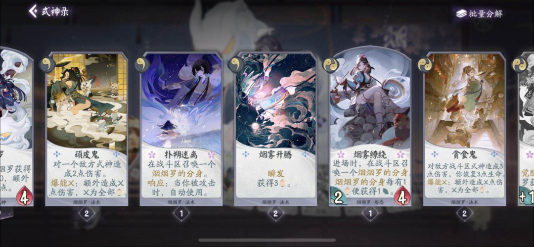 而像日和坊这样主打增益的式神,其技能卡组则更加考验玩家对能量点的运用。通过消耗能量,日和坊可以起到为额外抽牌、增加鬼火、群体恢复等效果,加上日和坊本身将生命值转化为能量的特性,如能精准把握能量运用时机,将会为整个团队起到强大的辅助作用。