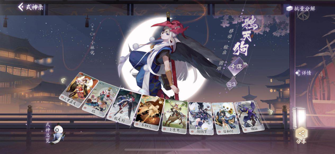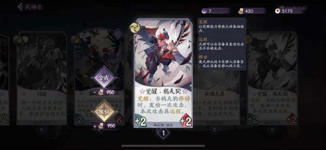 鸦天狗和不知火,就是这次新加入的非能量型式神,这两位没有能量设定,但都有各自独特的角色特性。鸦天狗以“移动”为核心,在笔者看来,这是一位非常适合前往战场区游走的选手。鸦天狗的技能卡组,能够让其每次被放置到战斗区时,都有机会造成相应的追加攻击和增益,甚至还有“鸦语疾走”这样的响应牌来保障其及时走位躲避。如果运用得当,鸦天狗就可以形成颇为独特的移动游走流打法,骚扰能力堪称一流。