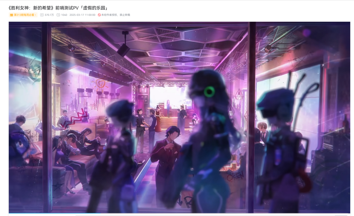 这正是《胜利女神:新的希望》IP沉淀下来的一大优势——早已成型的流行文化传播生态。这导致很多游戏辛辛苦苦想要构建的活力社群,《胜利女神》国服好像还没完全发力就要建成了。