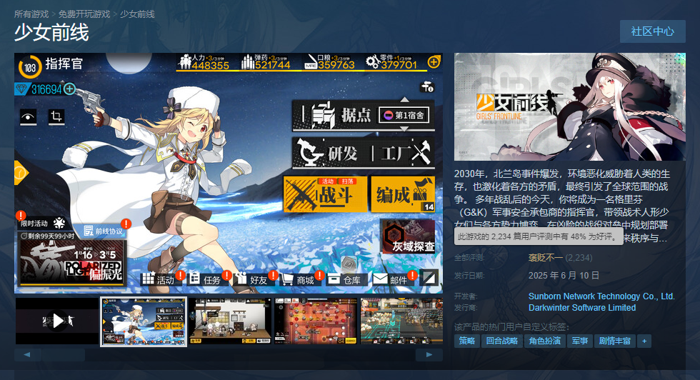 而今,通过PC版在Steam平台实现“秽土转生”的《少女前线》,虽然没有完全恢复元气,却也算实打实地帮少前这个老牌二游IP续了一口大命。