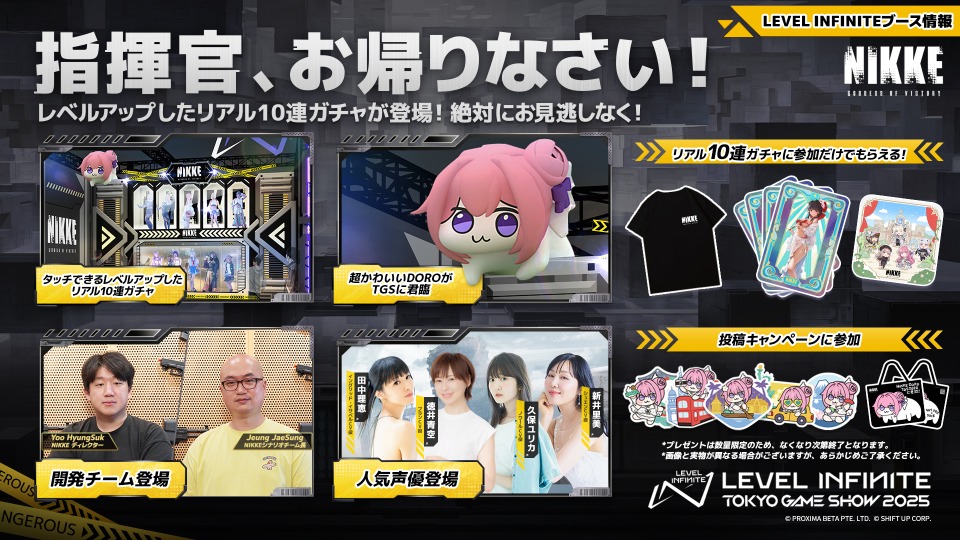 现场还准备了丰厚的奖品周边!参与“真实角色10连抽”有机会赢取冰箱贴、T恤等周边。欢迎带话题“#NIKKETGS2025”在社交媒体上发帖分享展会时刻!