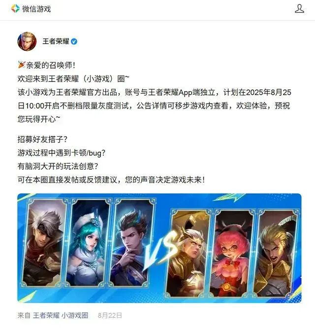比如网易先后将《梦幻西游网页版》《率土之滨》搬到小游戏平台尝试,而腾讯更把旗下旗舰产品《王者荣耀》引入小游戏端,目前已开启灰度测试,该版本账号与APP端不互通,仅开放3V3对战和5V5大乱斗等非主模式玩法。