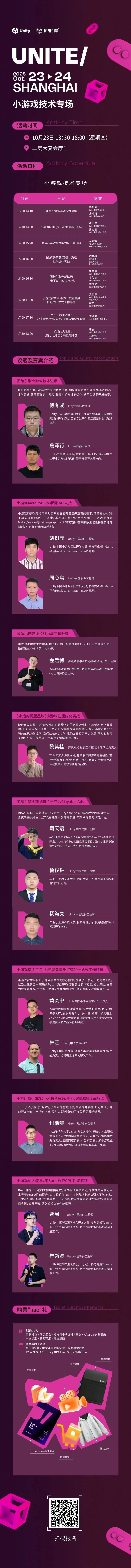 比如面向小游戏开发者,Unite2025今年同样准备了专场。Unity中国、腾讯、小米的开发团队和技术工程师都将在会上分享经验。