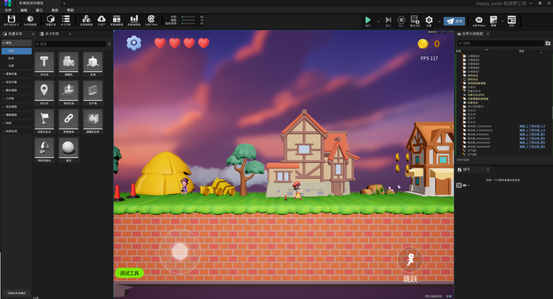 轻游梦工坊的破局思路,始于拆掉游戏开发的“高墙”。他们大胆提出,要让没有编程基础或美术背景的爱好者,也能将脑海中的创意变为可玩的游戏。“轻游梦工坊的核心设计目标就是大幅降低游戏开发的门槛。” 其团队表示。为了实现这一目标,团队并没有把AI仅仅当作一个附加功能,而是与腾讯混元大模型展开深度合作,把AI融入整个编辑器的底层逻辑。他们构建了无代码可视化编程、预制系统、海量资源库与AI生成的组合方案,形成一个尽量“傻瓜化”的工具体系。