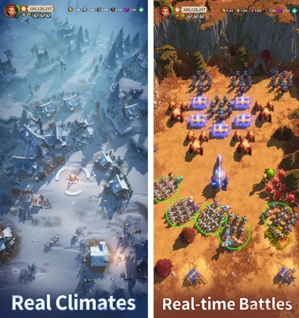 《Next Agers》则定位为文明演进题材的“SLG+”产品,前期融合吸血鬼生存(Vampire-like)与肉鸽塔防等轻度玩法模块,城建系统采用时代跃迁机制,让玩家们有更强的代入感。