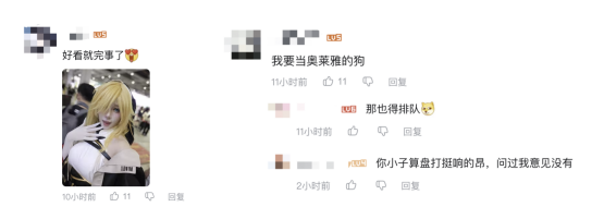 不少玩家也在漫展回顾视频下的评论区中留言发癫,既有展示和角色打卡集邮的玩家,也有通过“发癫”来释放自己对角色无处安放的“厨力”。