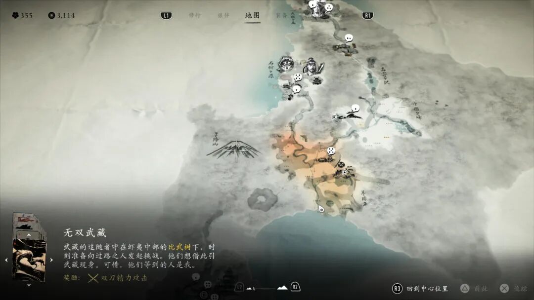 Sucker Punch这次真没搞满地图问号,而是通过优秀的引导鼓励玩家去发现问号。比如你需要向地图商购买地图碎片,才能拼凑出一些特殊地点的位置。你得用刀逼问小兵,才能找到一些仇敌的线索或是学习新招式的信息。最终慢慢面向“对羊蹄六人帮复仇”这个终极目标靠拢,完成北海道之旅。